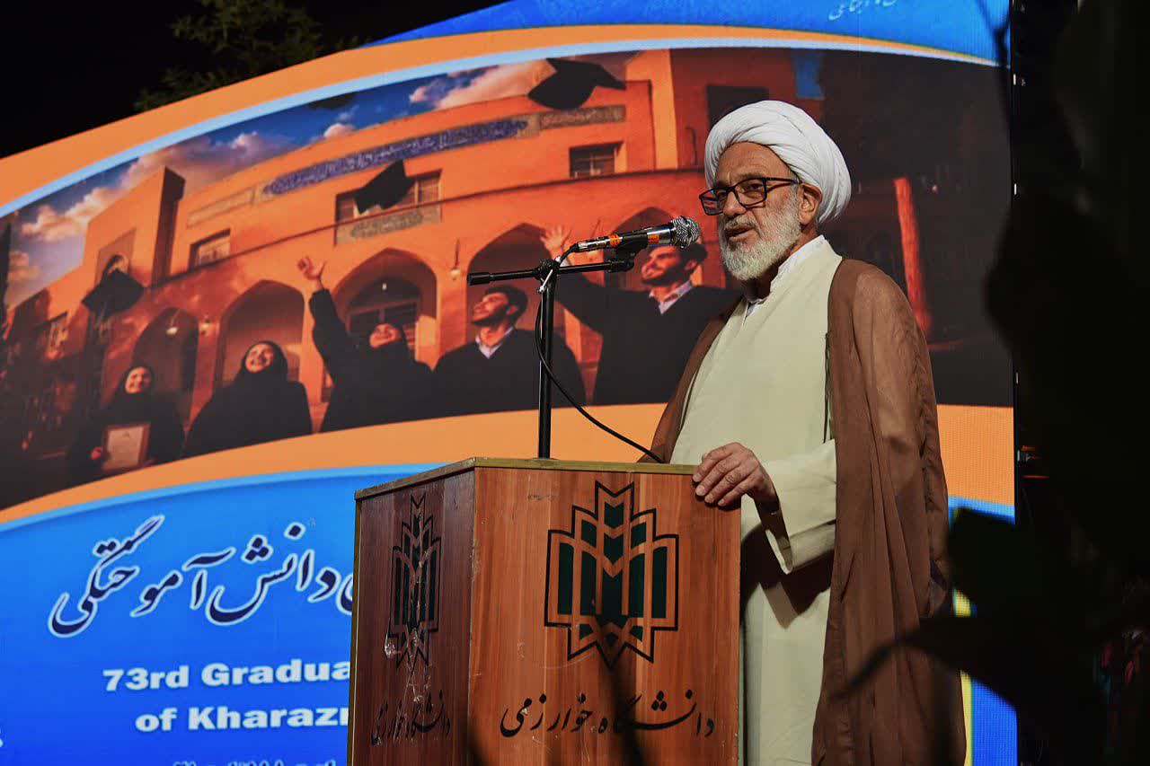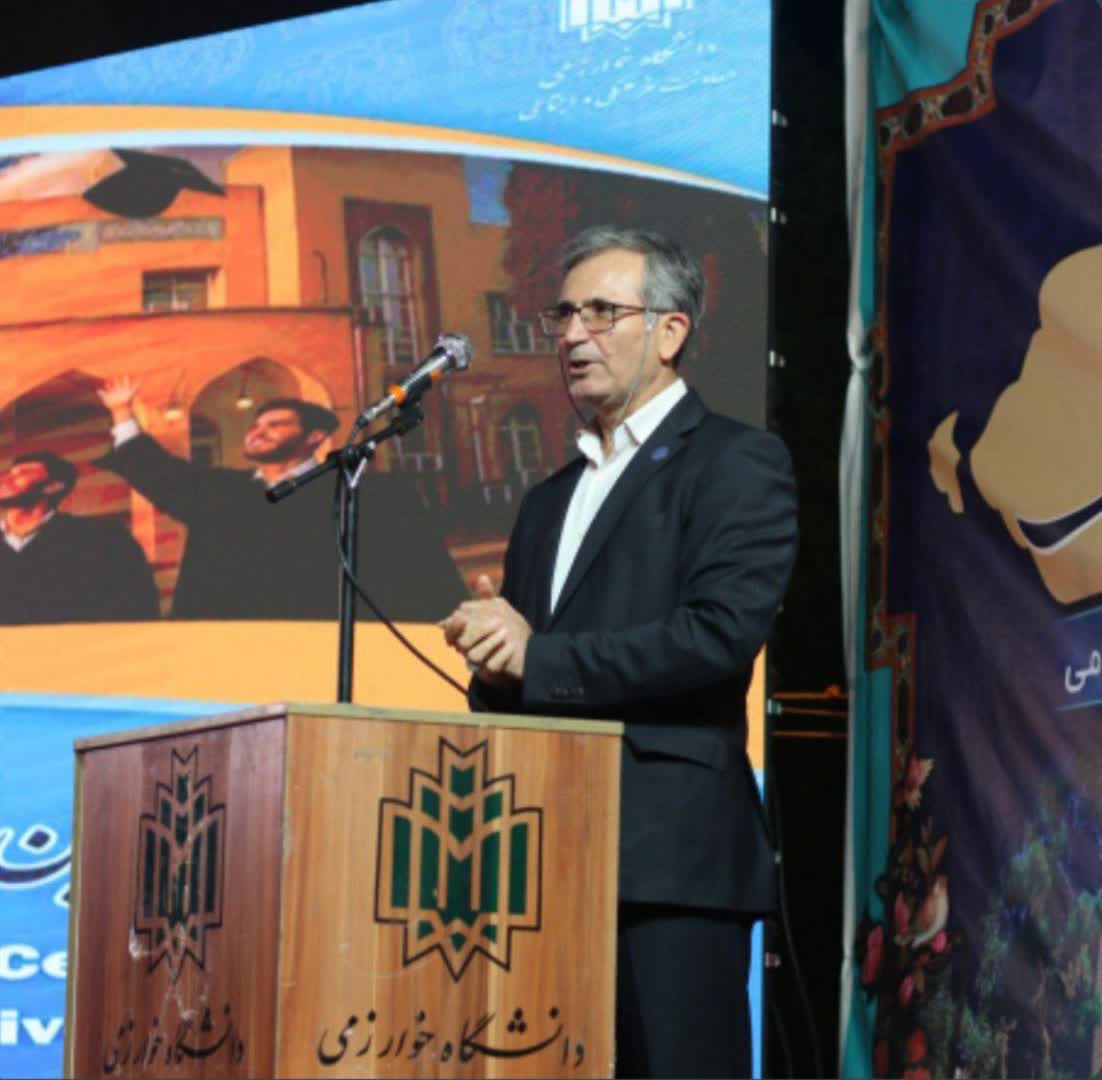 وی با اشاره به قدمت ۱۰۷ ساله دانشگاه خوارزمی افزود: «عظمت این دانشگاه تنها در بناها و تاریخ آن نیست، بلکه در شخصیتها و دانشآموختگانی است که نقشآفرینی گستردهای در ایران و جهان داشتهاند. بزرگی و پیشرفت هر کشوری نه به منابع زیرزمینی، بلکه به نسل جوان آن وابسته است و امروز شما متمایزکننده ایران فردا خواهید بود.» رئیس دانشگاه خوارزمی خطاب به دانشآموختگان گفت: «دانشگاه خوارزمی افتخار دارد که شما را عضوی از خانواده بزرگ خود بداند. هر کجا که باشید، در ایران یا جهان، همچنان بخشی از این خانواده هستید. ارتباط خود را با دانشگاه قطع نکنید و پایبند ارزشهای بزرگ آن بمانید.»