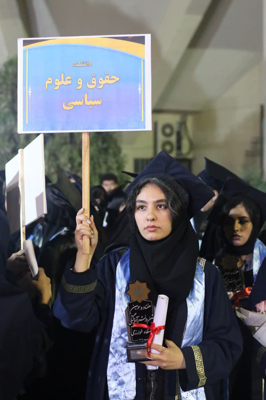 دکتر عبدالهی در پایان با تأکید بر هویت ملی و مسئولیت اجتماعی دانشآموختگان خاطرنشان کرد: «ایران به شما افتخار میکند و این افتخار را شما باید حفظ کنید. هر کجای جهان باشید، نقشی فراتر از دانشاندوزی خواهید داشت، اما هرگز پشت به ایران و ایرانی بودن نکنید. شما آیندهسازان این سرزمینید و دانشگاه خوارزمی همواره به شما میبالد.»